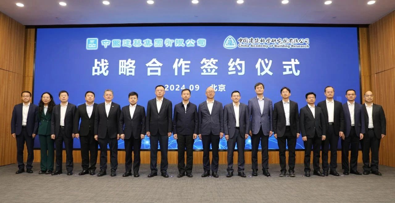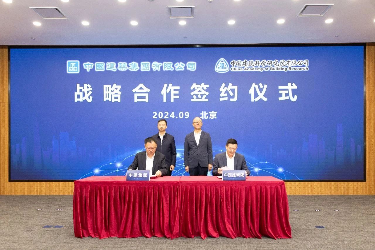 9月30日,中國建研院與中國建筑集團有限公司(以下簡稱“中建集團”)在京舉行戰略合作協議簽約儀式。中國建研院黨委書記、董事長許杰峰,中建集團黨組副書記、總經理文兵出席簽約儀式并就深入開展合作進行座談交流。中國建研院黨委副書記、總經理樊金龍,中建集團黨組成員、副總經理吳愛國代表雙方簽署協議。中國建研院黨委委員、副總經理李軍參加座談交流并主持簽約儀式。